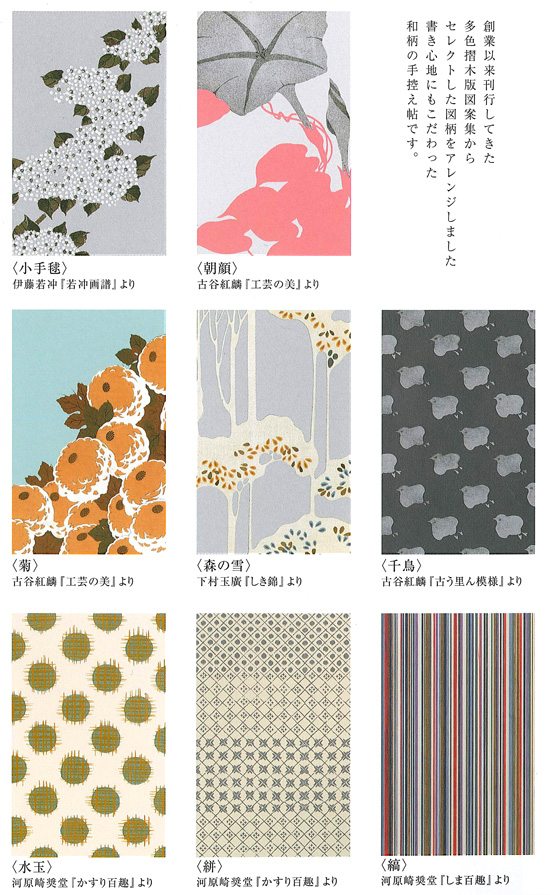 創業以来刊行してきた多色摺木版図案集からセレクトした図柄をアレンジしました。